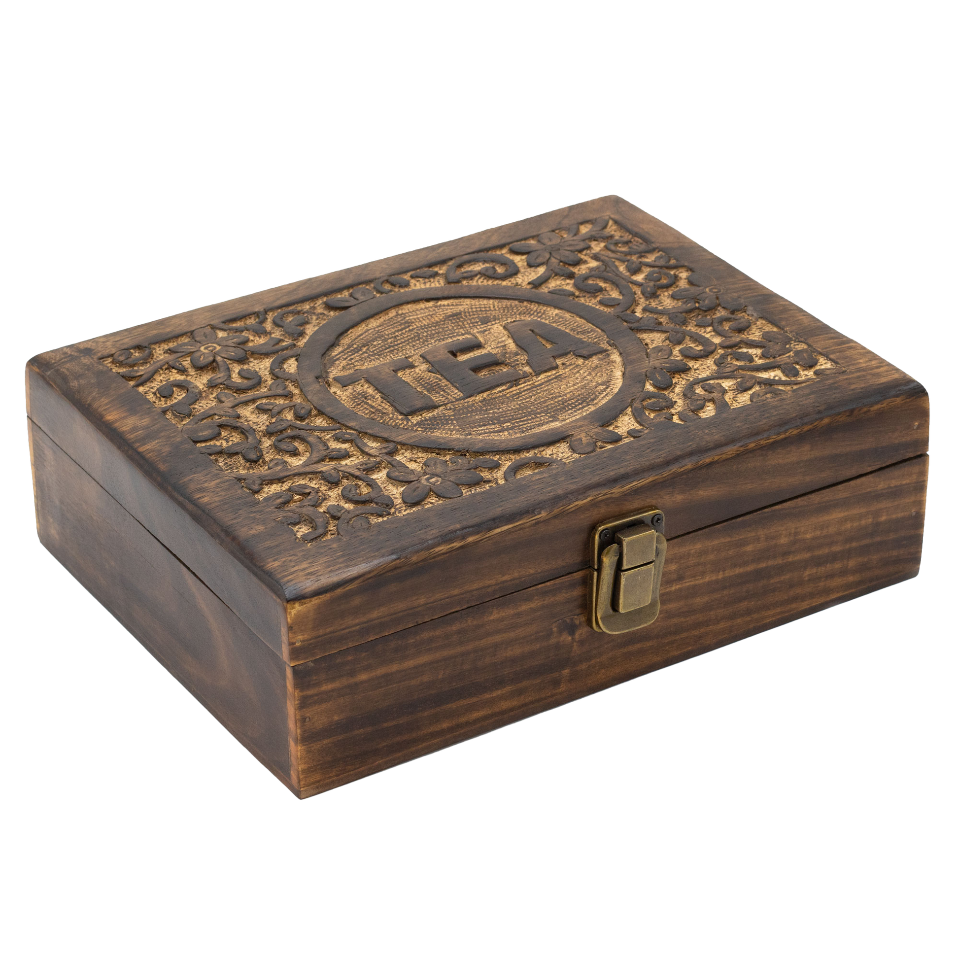 Boîte à thé artisanale en bois de manguier, finement sculptée à la main. Son format généreux abrite 12 compartiments pour organiser vos thés et infusions tout en les protégeant de la lumière et de l’humidité. Une pièce décorative et fonctionnelle pour sublimer votre rituel.