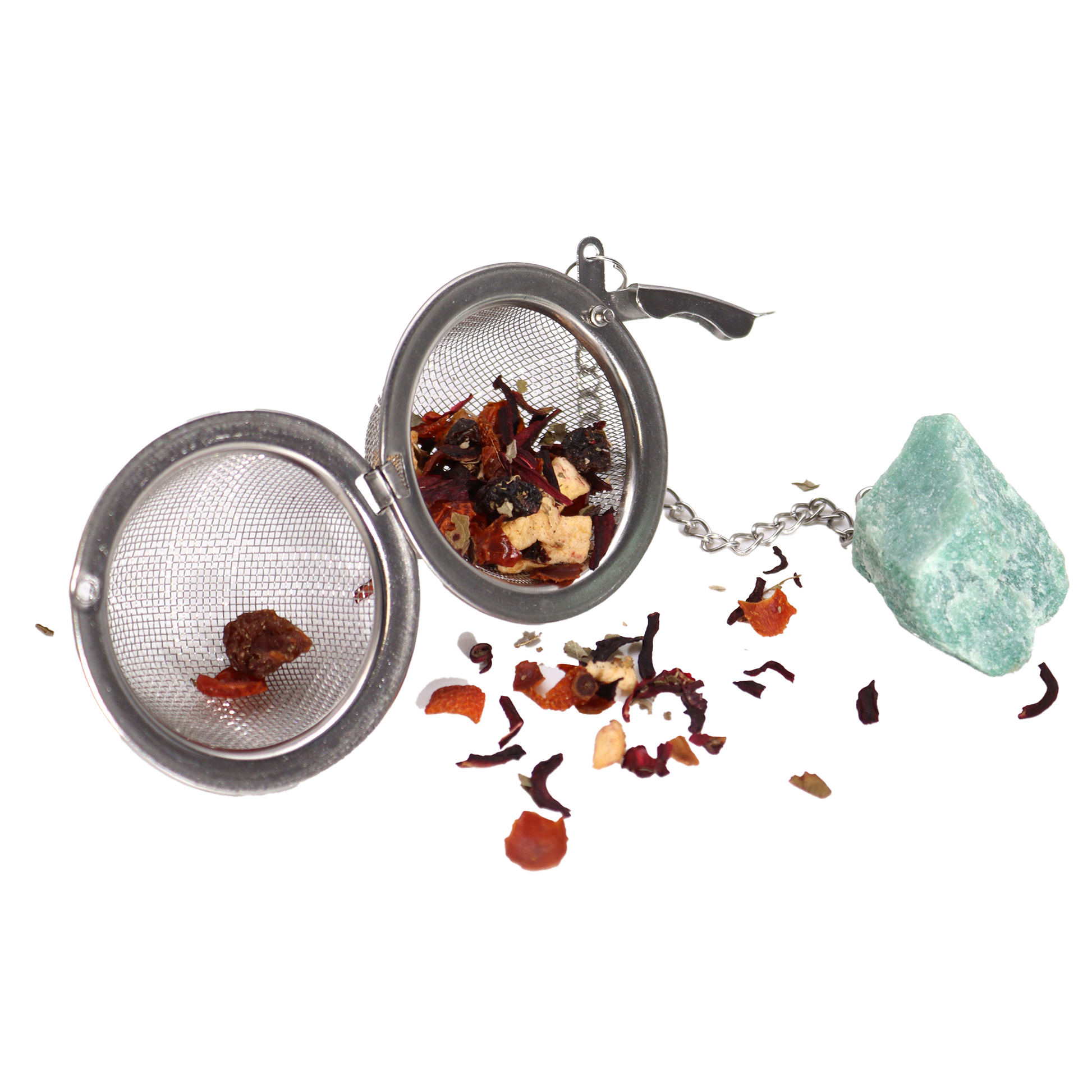 Boule à thé inox avec pendentif pierre naturelle – Édition “Gemstones”