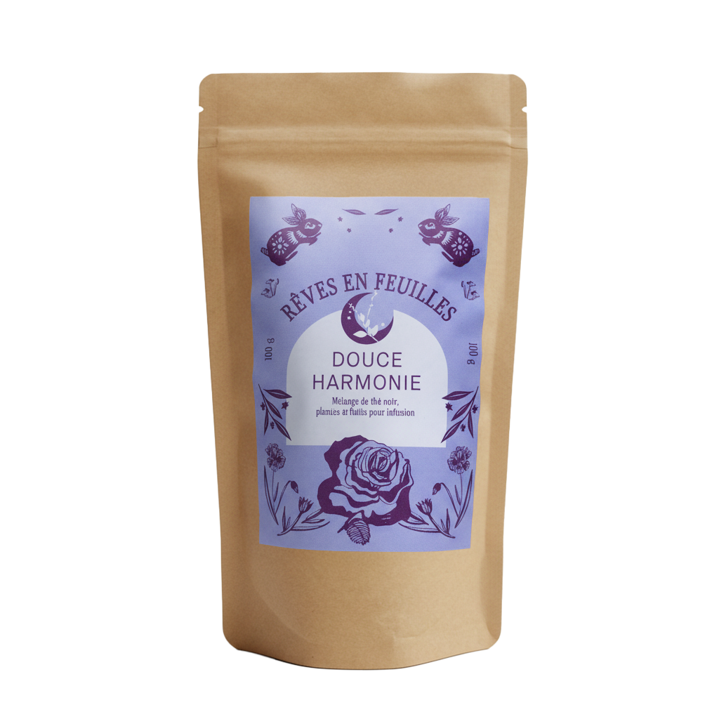 Douce harmonie marie la profondeur ambrée d’un thé noir à un bouquet de fleurs (lavande & camomille) et la fraîcheur citronnée de la verveine. La pomme adoucit l’ensemble, la réglisse prolonge une sensation ronde et gourmande. Un mélange pensé pour un moment calme, avec une tasse confortable, lumineuse et florale.