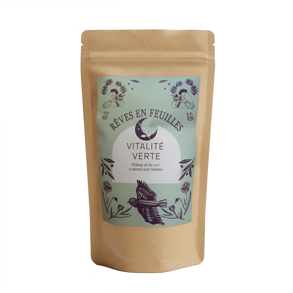 Vitalité Verte marie un thé vert lumineux aux parfums du romarin et du thym, relevés par une pointe de gingembre et des écorces de citron.